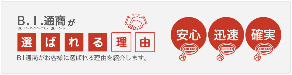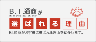 物流業務からスター⼘した B.I.通商は、創業以来培ってきたノウハウを⽣かし、アウトソーシングや⼟産品の企画販売、飲⾷店事業など多彩な分野へ進出しています。 その全ての根幹にあるのは、お客様に⼼からご満⾜していただきたい、という想い 。 社員⼀⼈ひとりが、「Smile & Satisfaction to You」を胸に、時代の変化やご要望の変化に柔軟に対応するサービスを提供しています。