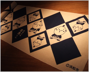 うなぎやピアノ、オートバイやガーベラといった浜松ならではの特産品や⽂化、歴史をモチーフにしたオリジナルの絵柄を浜松注染そめという伝統的な技法で染める「はままつてぬぐい」、浜松市マスコットキャラクター「出世⼤名家康くんJ グッズなど、浜松を中⼼とする遠州地⽅⼀帯の地域⾊を全⾯に押し出した⼟産品を企画・販売しています。伝統の技とキャラクターグッズを通じて、浜松を全国へPRすることにより、地域おこしに寄与していきます。登録第5491403号